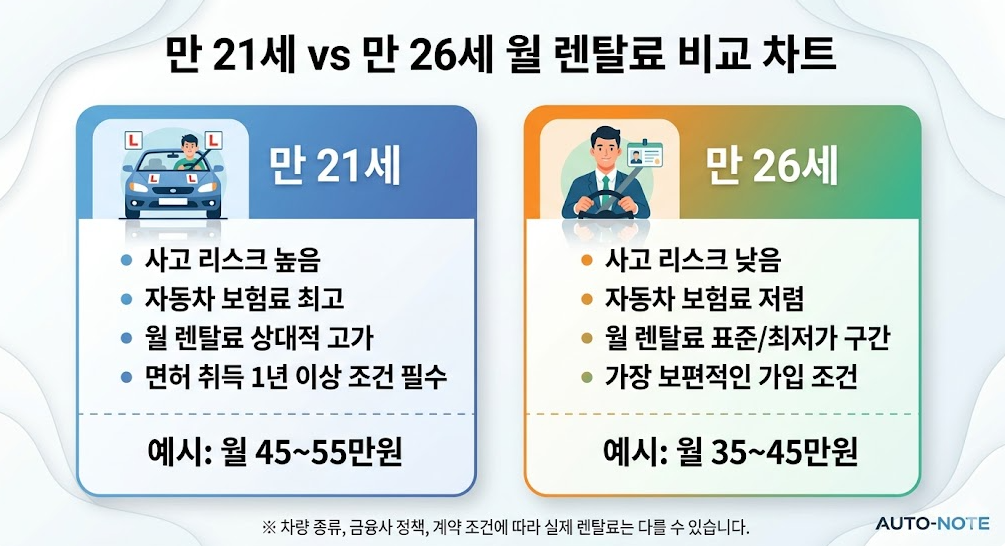만 21세 vs 만 26세 월 렌탈료 비교